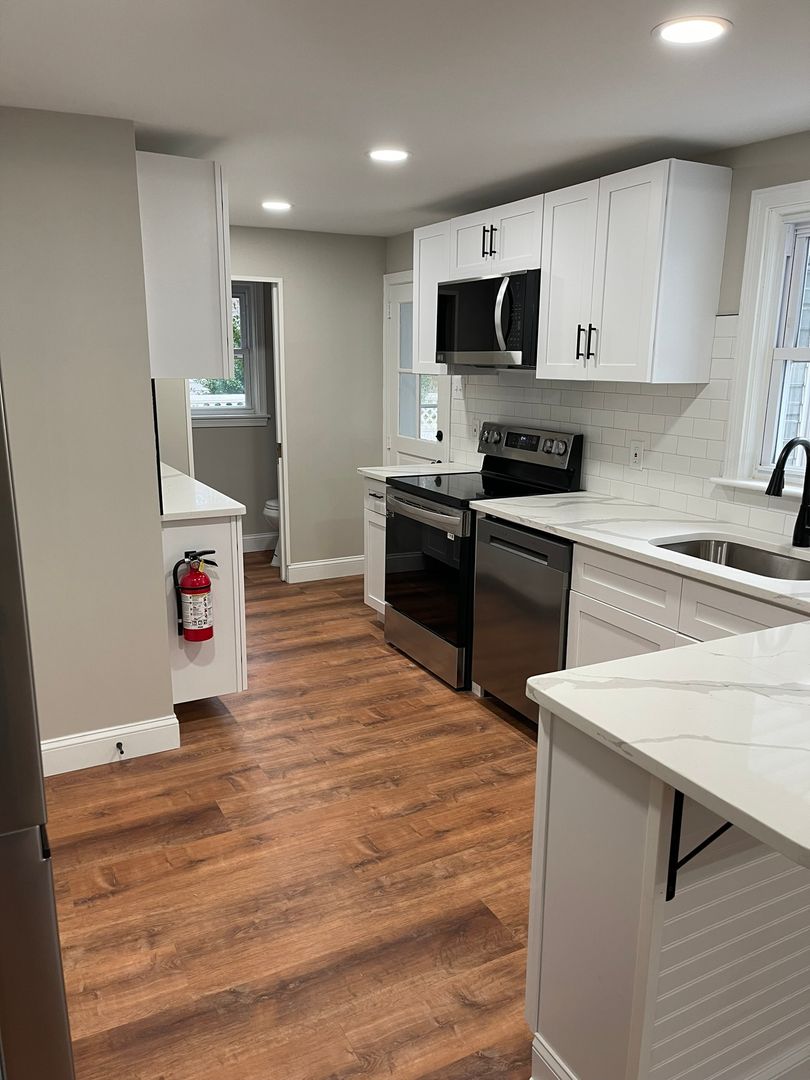 Totally renovated 2 story home.  3/4 bedrooms, 1/1 Bath with open floor plan.  LVT flooring through out the 1st floor,  carpet on steps and 2nd floor and  tile in both bathrooms.   Updated kitchen cabinets, counter tops and stainless steel appliances.  Room off dining area could be used at a 4th bedroom or family room.  3 season room located off kitchen.   Full basement with bilco doors to fenced rear yard.   One car garage with interior access.  Washer, dryer located in basement along with utility sink and  HVAC system and hot water heater.  Tenant is responsible for all utilities, yard maintenance, snow removal and trash. To schedule a showing contact our office at 302-355-1880 & applications can be found on our website www.dppminfo.com.